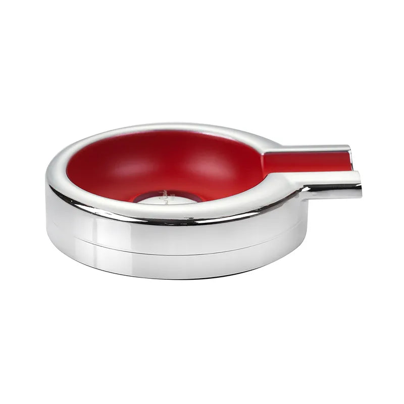 Metal Zinc Alloy Egg-Shape Single Cigar Ashtray, Silver + Red